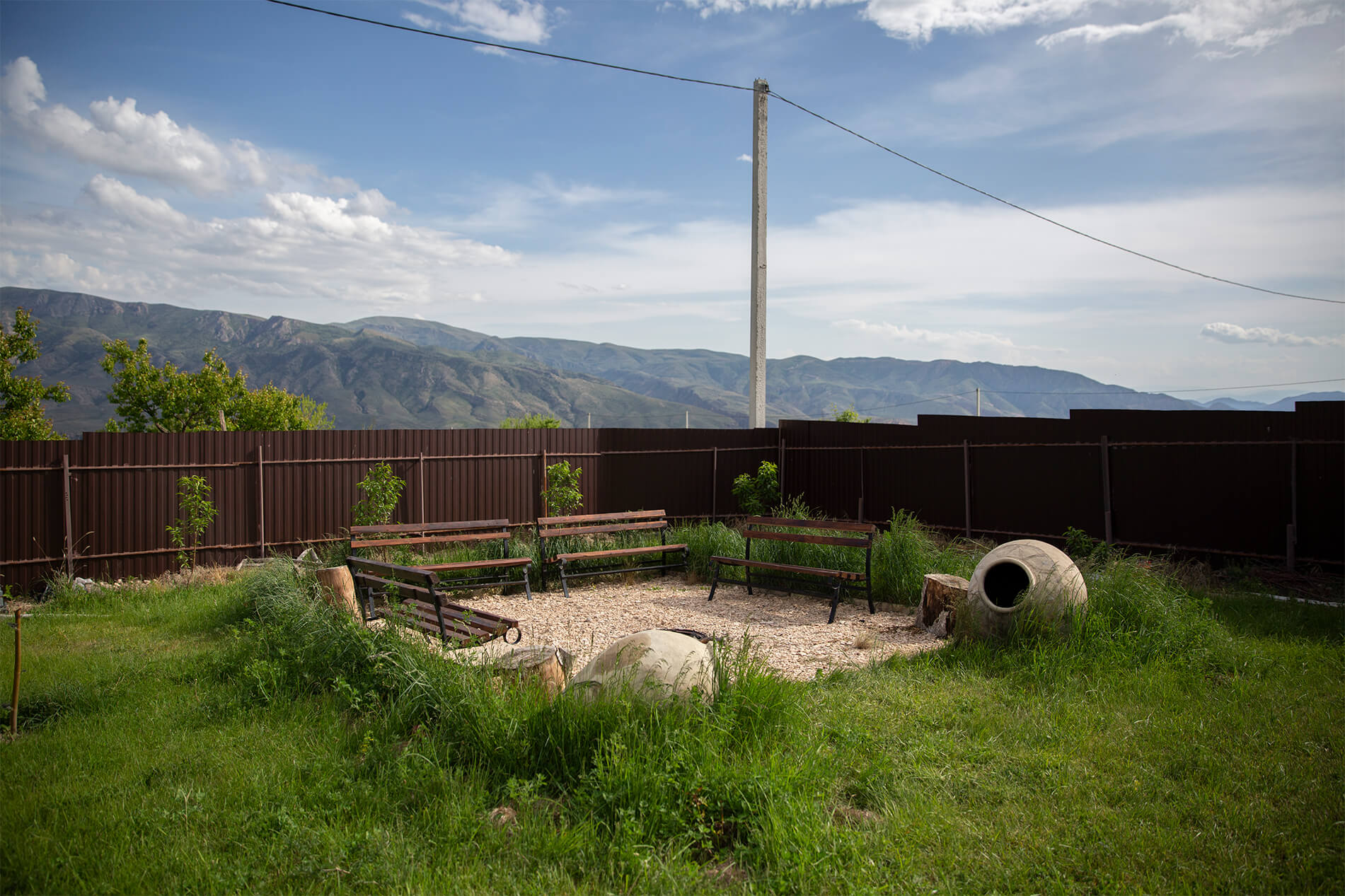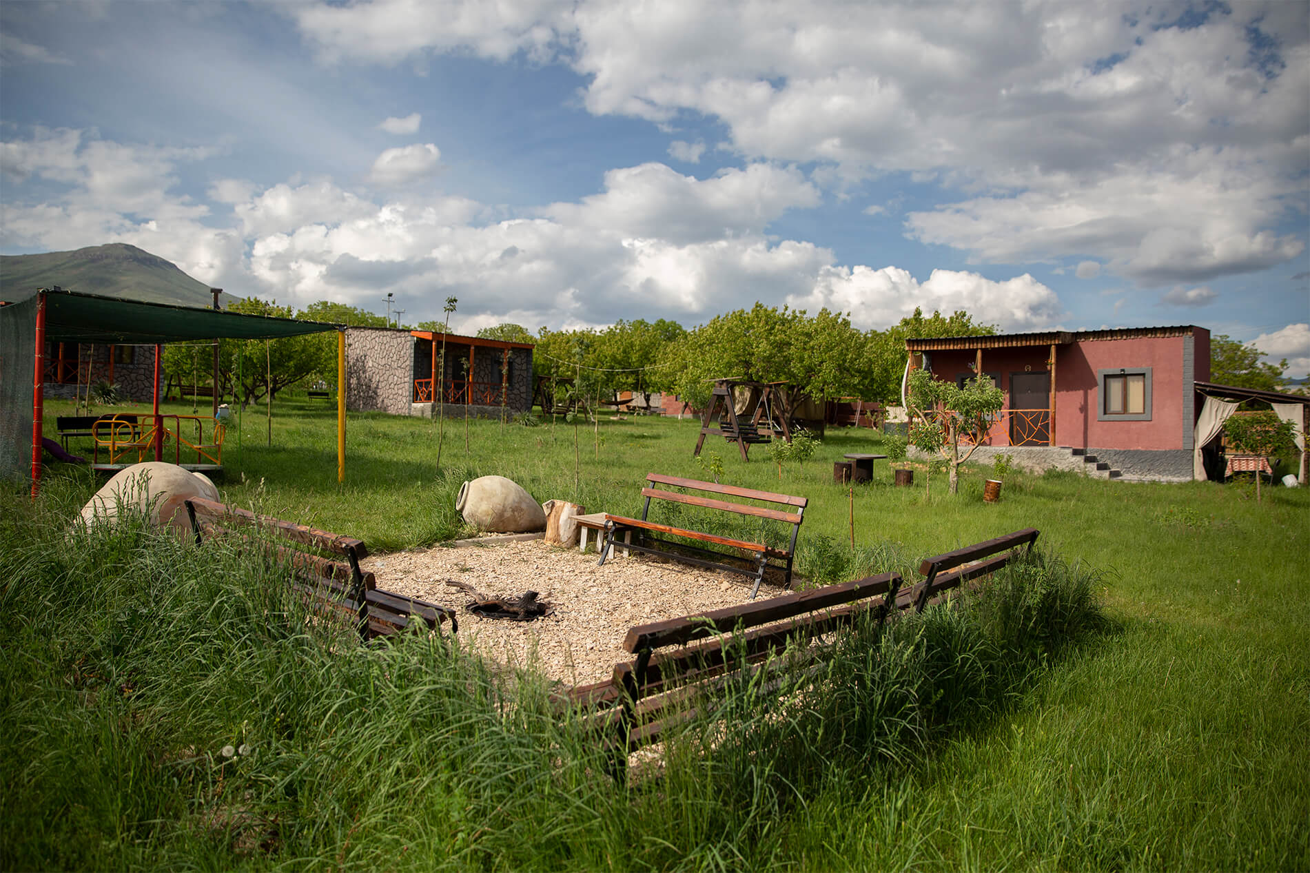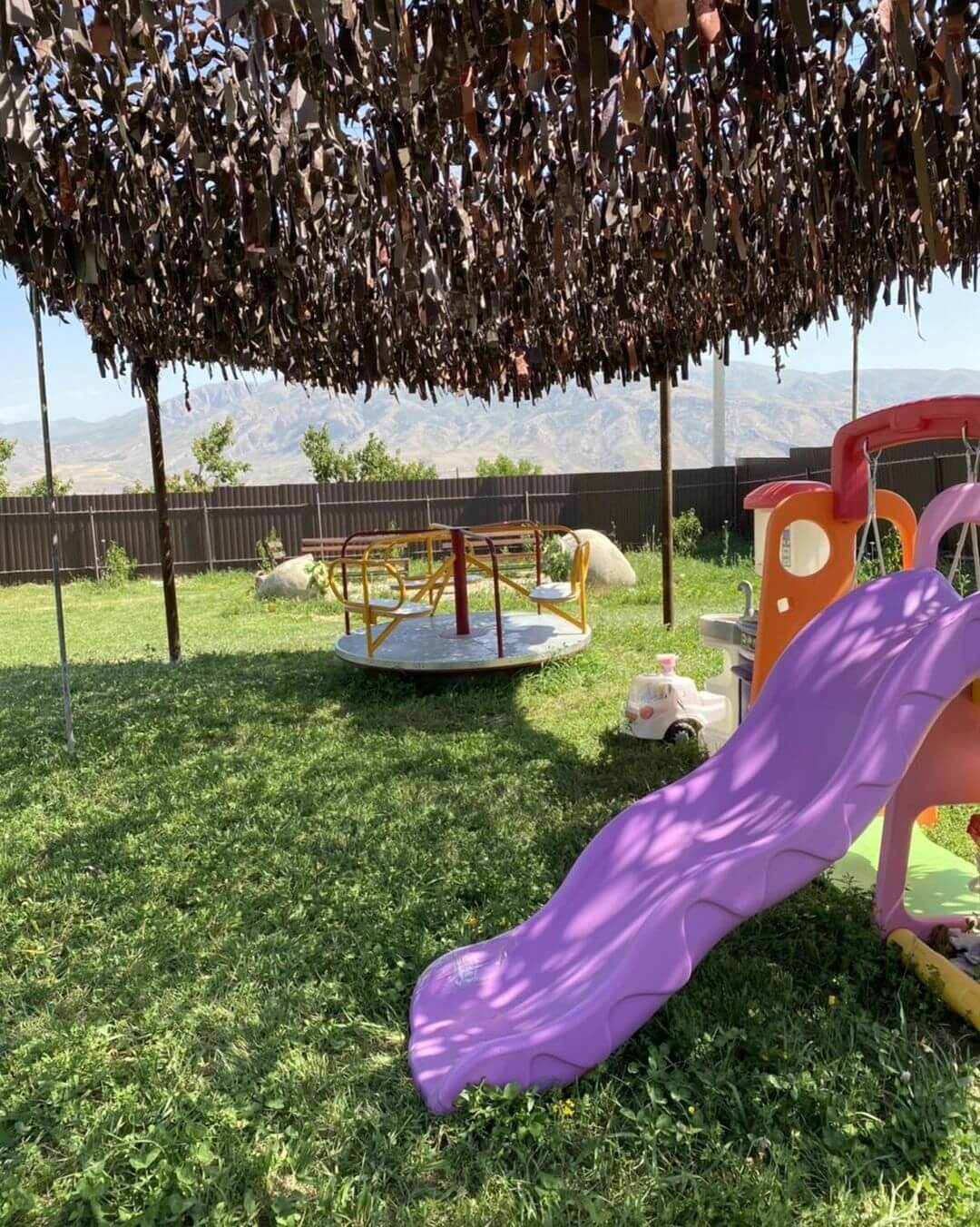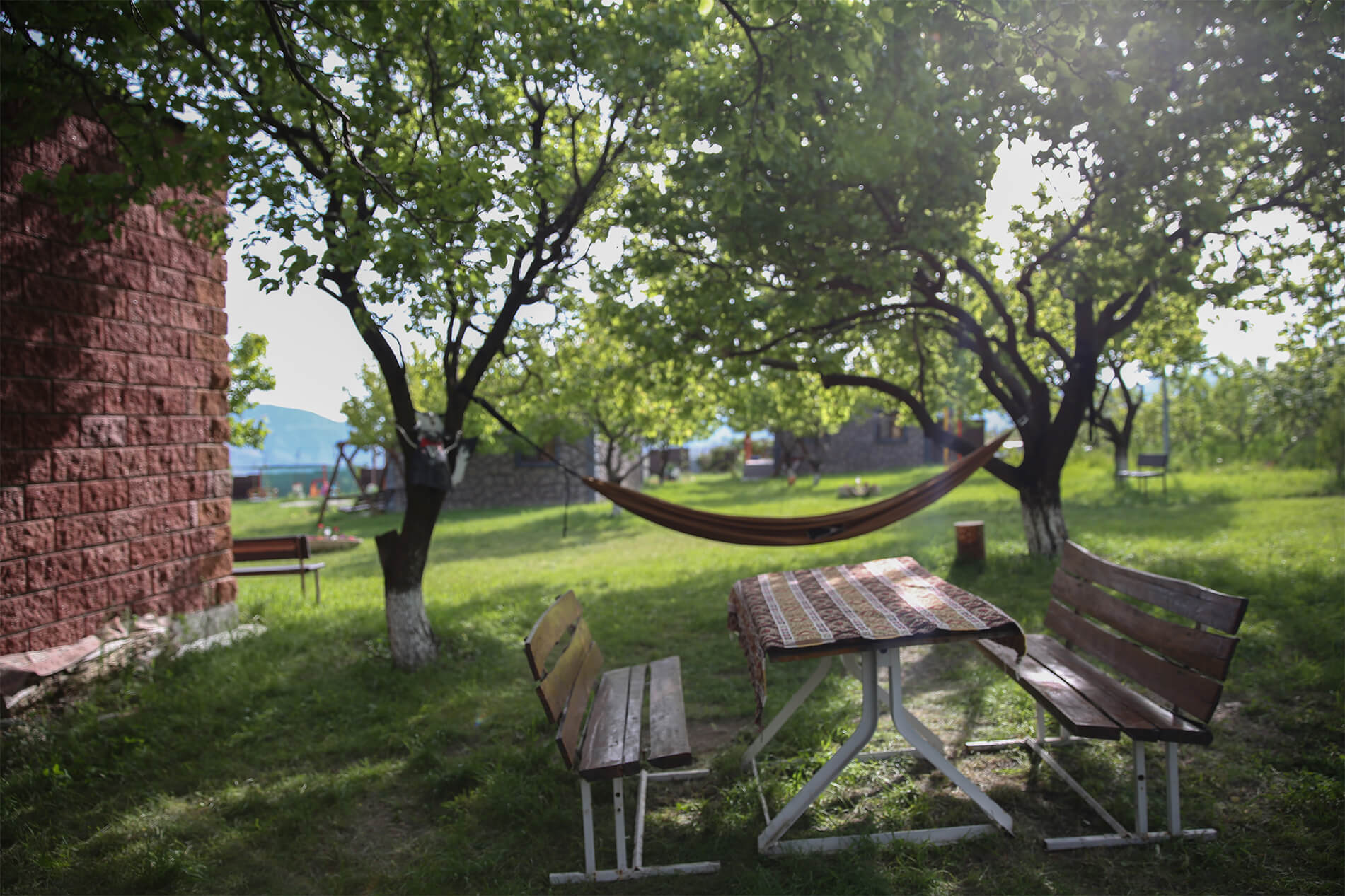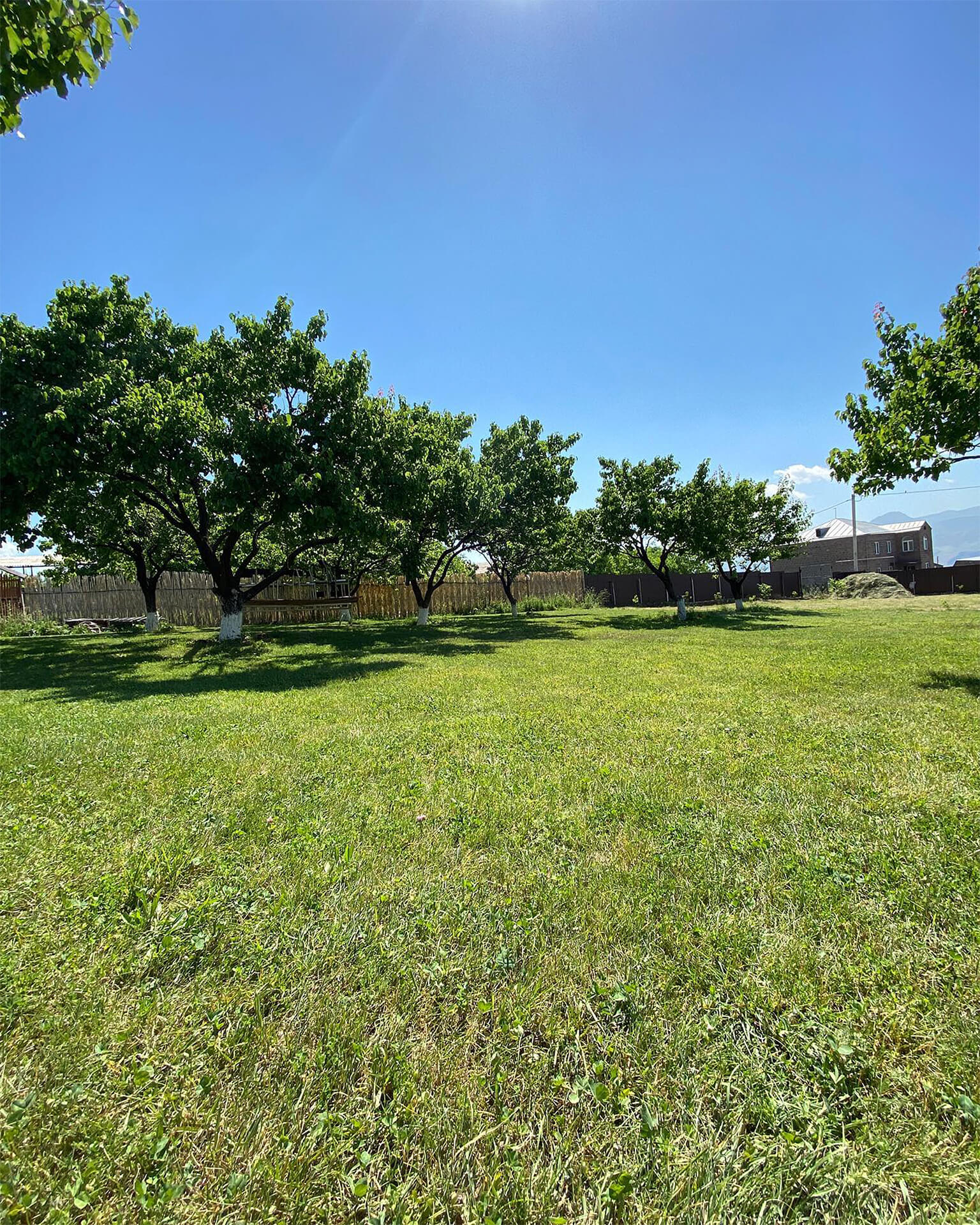 A large area with a garden, its own gazebo and swings, silence and a beautiful view around. The house has all the amenities - dishes, a small stove for cooking. The house is located in a village, there is a grocery store nearby, also a convenient